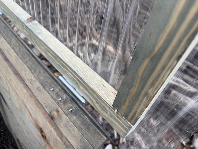 蝶番で開閉できるシンプルな木の蓋です。