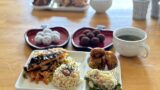 毎年みんなで持ち寄ったおかずにで搾りたてのお醤油をいただきます。