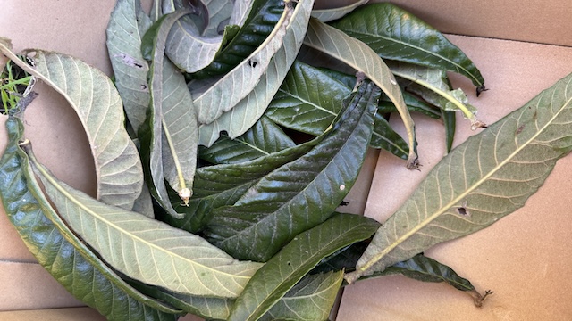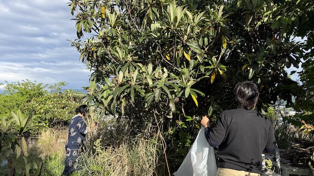 私はアトリエオープン記念の準備で、雨上がりの中をメンバーさんたちと琵琶の葉をもぎに行ってきました。