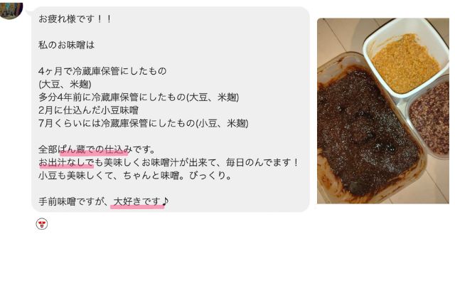 ぜひ、「うちの味噌が一番美味しいよ❤️」と自慢してください。
