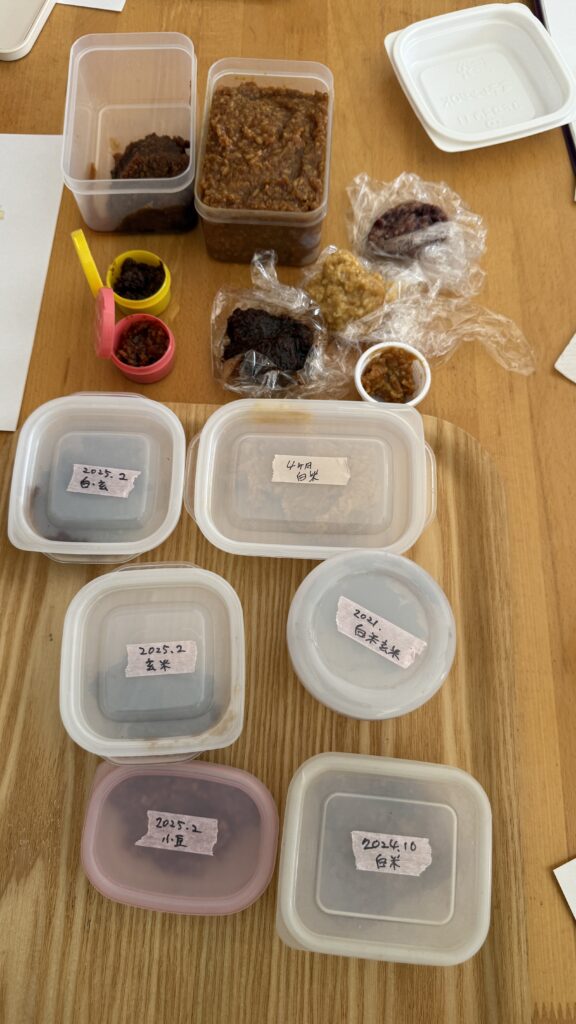 自宅で仕込んだ味噌たちが、気候や保管環境、発酵の進み具合によってまるで違う味に育っていることが分かるのです。