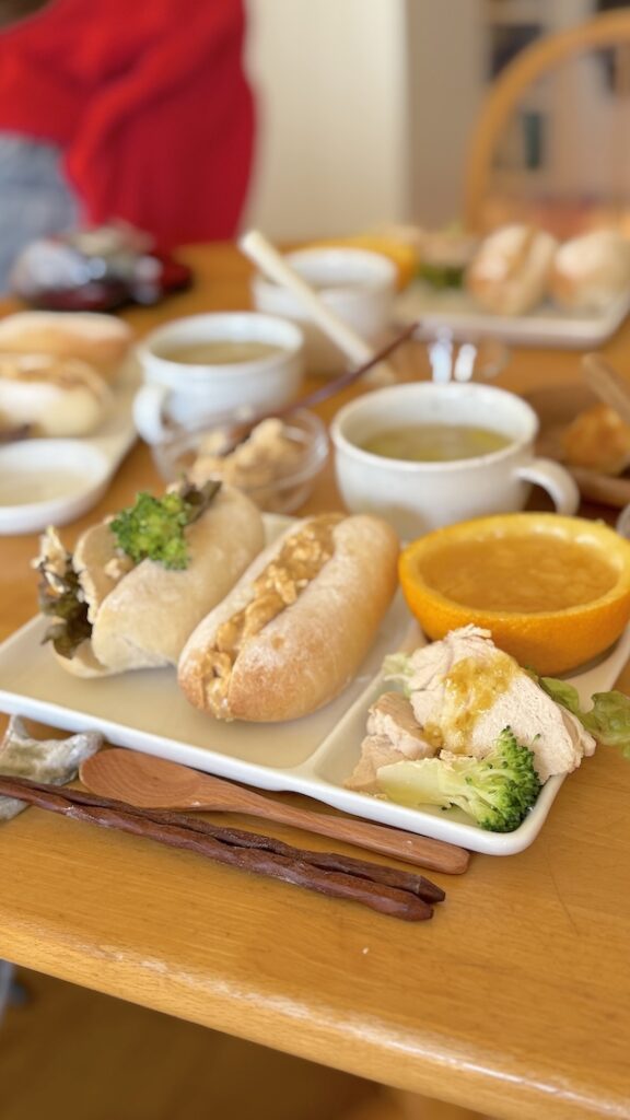 味噌の食べ比べをした後は、自家製の酵母パンに味噌クリームディップをはさんで、発酵ランチタイム!今年はやわらかい白いコッペパンを用意し、みんなでワイワイ味わいました。